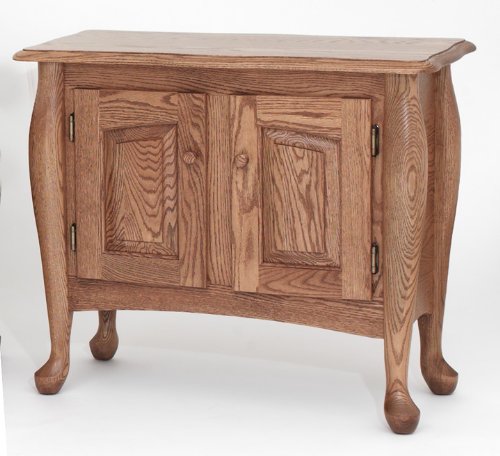 #1139 Solid Oak Queen Anne Storage Sofa Table Size *15" deep x 39" wide x 26" high *Ships completely assembled! Construction *100% Northern Wisconsin Solid Red Oak. *Dado and pocket screw construction. About 50 assembly screws in each table! *NO veneer plywood chip board pressed board or vinyl! *Very solid table!! *Rear panel (unseen in photo) is a solid panel just like the side. *No shelf behind doors. Matching Tables *#1131 End Table *#1135 Coffee Table Finish *ML Campbell Dura Var Catalyzed Varnish for a Rock Hard" finish. *Shown in Autumn Oak stain. Also available in Golden Oak Mission Cherry or Chestnut *Click on the finish" to learn more. Order this Solid Oak Sofa Table today I will make one for you and have it shipped within 30 days. If you need it sooner let me know. If it is possible I will get it to you quicker. Your Great Grandchildren Are Going To Love This Table!.../ #1139 Solid Oak Queen Anne Storage Sofa Table / Sofa Queen
