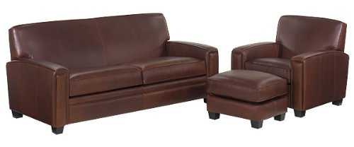 YOU SAVE .00! Includes 1 leather sleeper sofa (pictured), 1 leather chair (pictured), and 1 matching leather ottoman (pictured). See individual pieces for dimensions. Available in 20 distinct leather colors and 2 leg color choices. * Seat Height 21"/Arm Height 24" * Select Kiln Dried Frames * 100% Top Grain Leather * 5.25 Inch Kingsdown® Mattress * Removable & Zippered Seats * Carefully Hand-Crafted In N.C..../ Burton "Designer Style" Soho Style Two Seat Leather Sofa Group: Burton "Designer Style" Leather Queen Sleeper Sofa Set / Sofa Queen